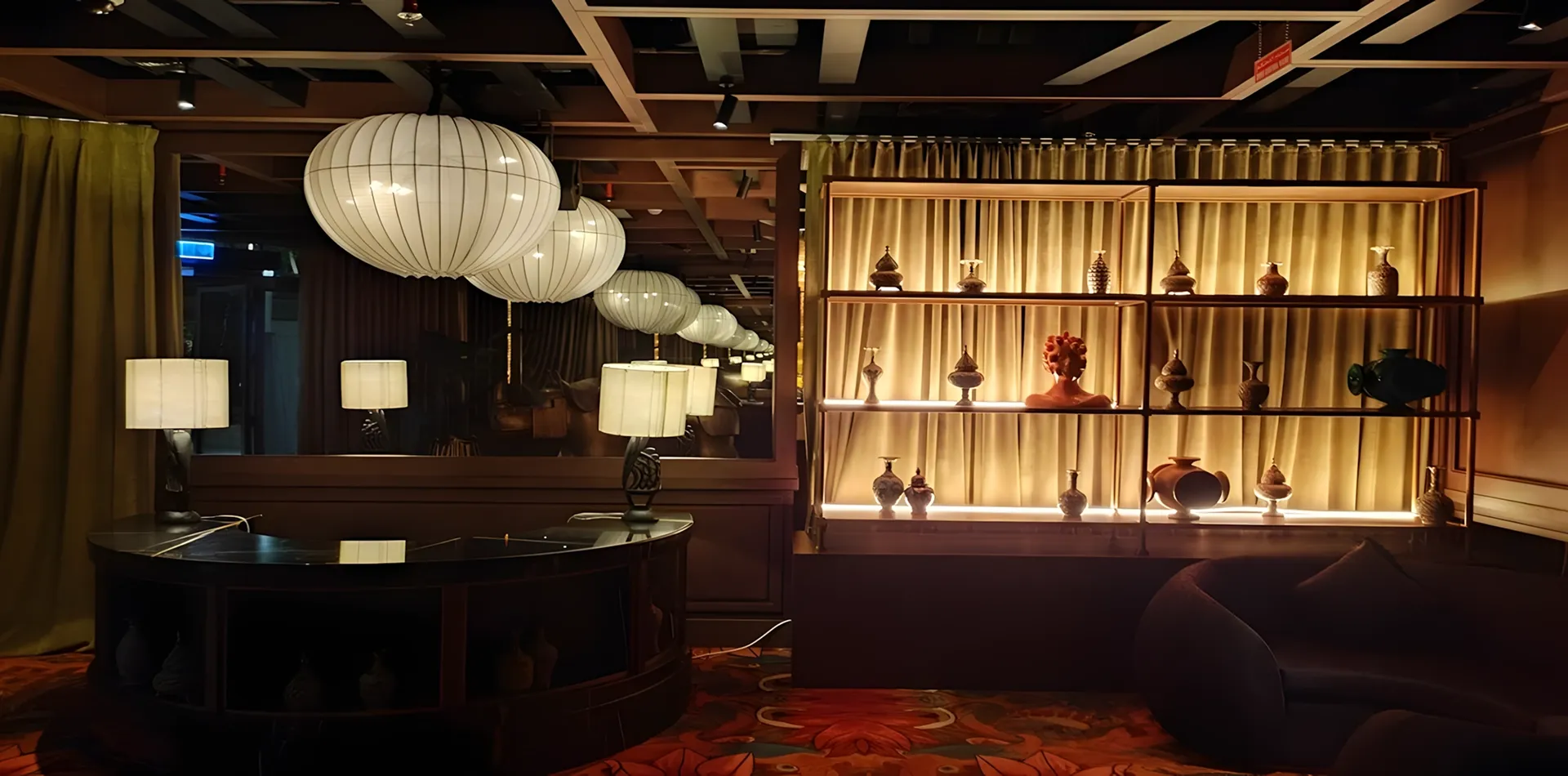 A tropical-chic fusion of Japanese precision and Latin boldness, Salvaje enchants with vibrant botanicals, gold-accented textures, lush fabrics, and dramatic vistas of the Burj Khalifa. Al Huzaifa’s residential interpretation: custom canopy-like ceilings, rich textural wall finishes, statement lighting, curated indoor greenery, and view-framing glazing, each room becomes a lush sanctuary of wild elegance. Balancing functionality with aesthetics, this interior showcases our ability to craft dining spaces that are not only visually striking but operationally efficient.